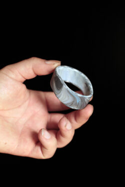 This porcelain cockring will not only decorate your dick but help it stay hard. Wearing it can enhance sensations so it’s fun to use for soloplay and intercourse. It’s design is rounded off and won’t hinder penetration. The shape is complicated to explain but it follows the body. Round at one end, slightly oval at the other, the tube is concave a little and the wavy shape seen from the side follows the shape of the body.