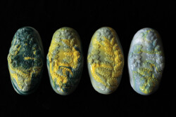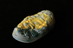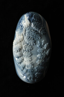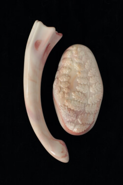 The Fern Fossil, a fossil inspired grinder, is great for external stimulation of the labia. Ferns are a very ancient family of plants. They predate the beginning of the Mesozoic era, 360 million years ago. When the asteroid hit, causing the mass extinction, even the lush and towering coniferous forests that had marked the Cretaceous period disappeared. For roughly a decade, there was only cold and darkness. Ferns are very hardy plants and the first to return in the decades after the impact and firestorms that raged over the earths surface. The root systems can survive and grow back and the spores can carry very far and germinate even after decades. They are a testament to perseverance, no destruction is forever as renewal and growth will always happen once the dust settled.
