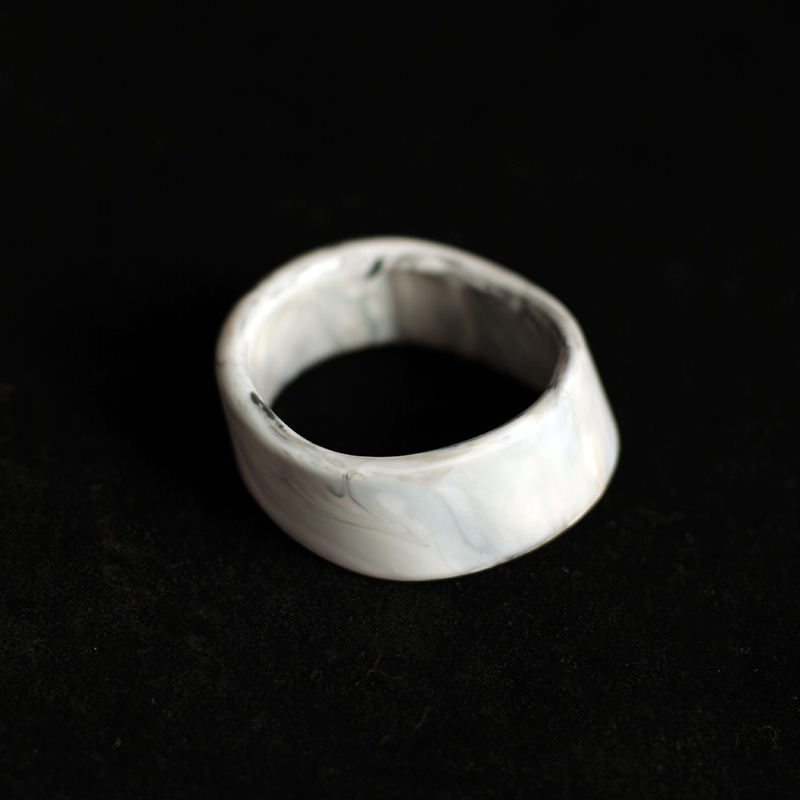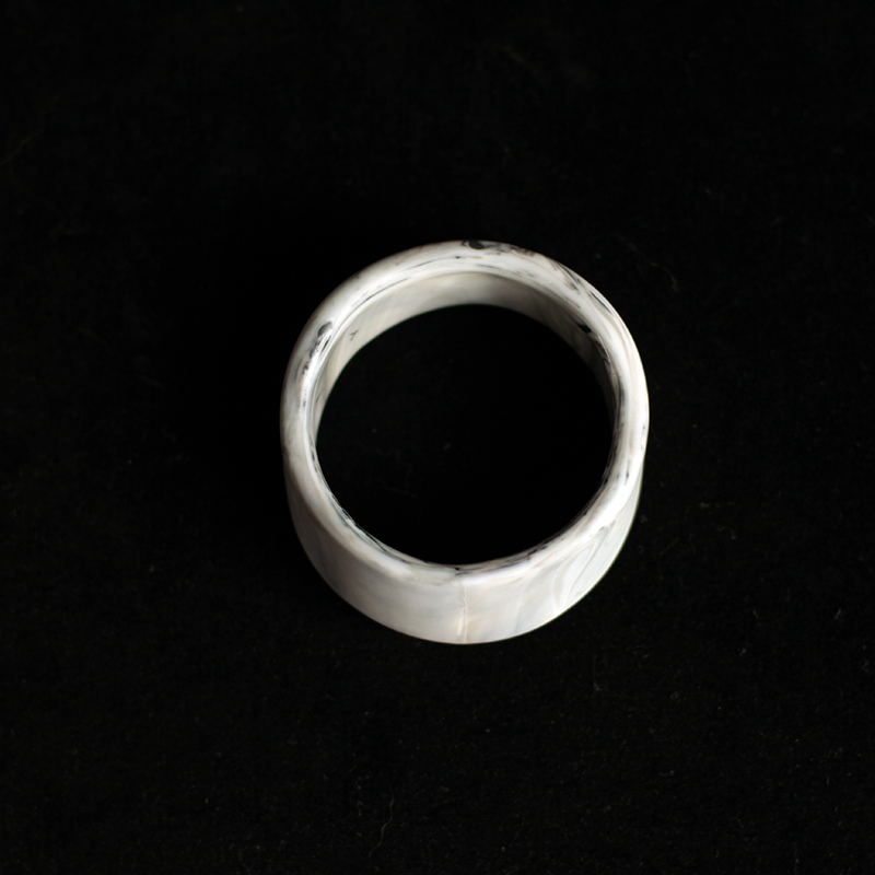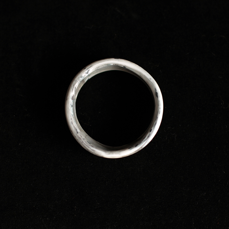 White porcelain marbled with thin streaks of black, reminiscent of smoke slowly curling its way upwards through the air.