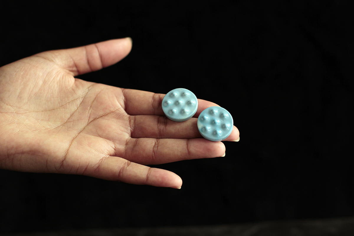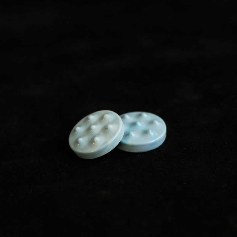 These painpucks are a marbled bright blue, reminiscent of a cloudless sky in summer.